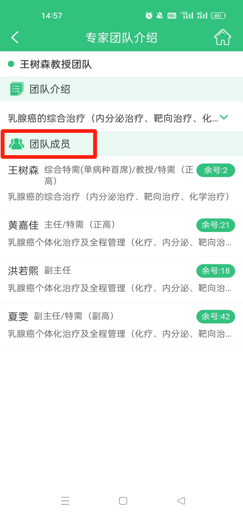第二步:患者可根據(jù)自身需要,預(yù)約專家團(tuán)隊(duì)內(nèi)其他醫(yī)生號(hào)源