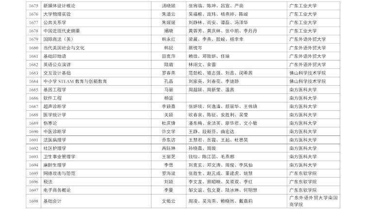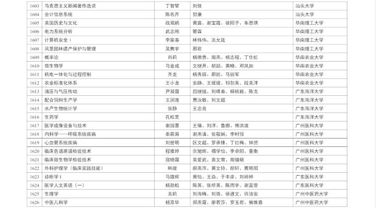具體公示名單如下(以廣東省高校為例展示部分,完整內(nèi)容請(qǐng)查閱附件):