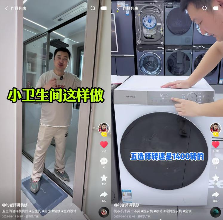 想通了其中關(guān)竅,他也毅然注冊(cè)了@劉老師講裝修 的快手賬號(hào)。但新渠道的開(kāi)拓并不容易,“最開(kāi)始完全不知道要如何下手,分享內(nèi)容的技巧、拍攝手法都一竅不通,有時(shí)折騰一個(gè)星期都搞不出一條視頻”。