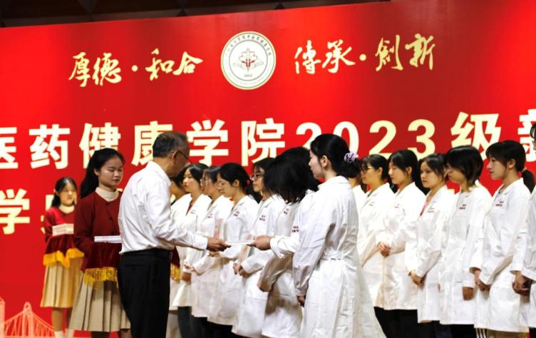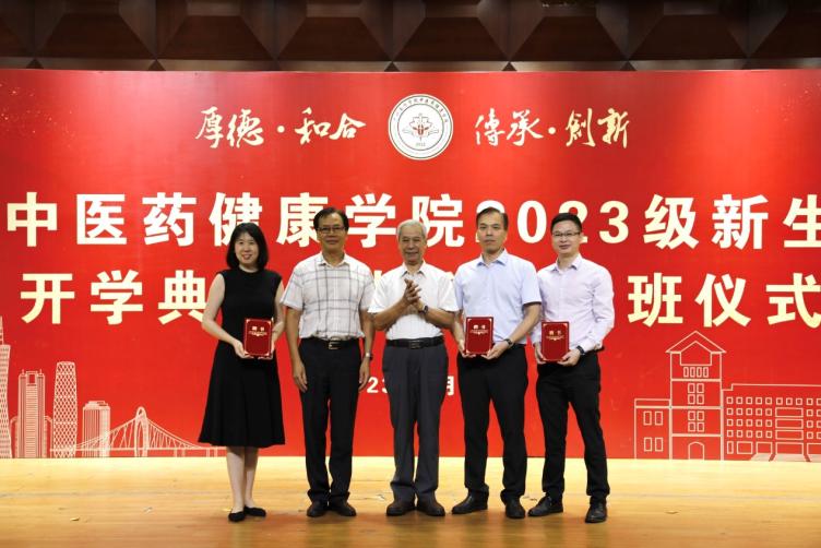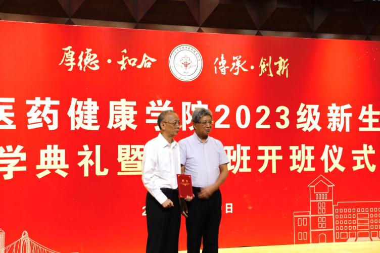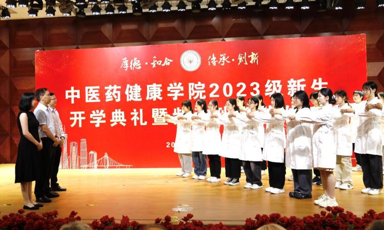 典禮上公布了中醫(yī)藥健康學(xué)院院徽及院訓(xùn),期望學(xué)院師生秉承厚德和合,傳承創(chuàng)新的院訓(xùn),爭(zhēng)做中醫(yī)藥高質(zhì)量發(fā)展的推動(dòng)者。