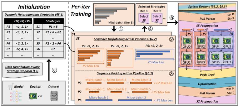 這四類不均衡使得現(xiàn)有依賴靜態(tài)同構(gòu)并行與最大長(zhǎng)度packing的方法在實(shí)際訓(xùn)練中效率低下。因此,需要在并行策略與數(shù)據(jù)管理層面協(xié)同優(yōu)化,以適應(yīng)真實(shí)世界中變長(zhǎng)序列的特性。