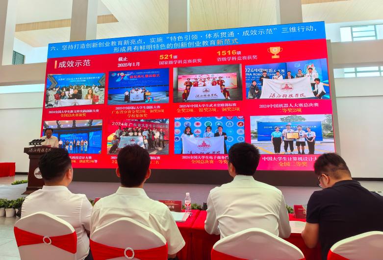 創(chuàng)新性提出了“五育并舉·五創(chuàng)融合”應(yīng)用型人才培養(yǎng)模式改革,全面推動(dòng)了人才培養(yǎng)質(zhì)量新提升。僅從學(xué)生學(xué)科競(jìng)賽一項(xiàng)來看,學(xué)生獲國(guó)家級(jí)、省級(jí)學(xué)科競(jìng)賽獎(jiǎng)項(xiàng)數(shù)量大幅躍升,2024年較2022年增長(zhǎng)超13倍,學(xué)生在“挑戰(zhàn)杯”、中國(guó)國(guó)際大學(xué)生創(chuàng)新大賽等高水平賽事中屢獲金獎(jiǎng)。動(dòng)態(tài)優(yōu)化學(xué)科專業(yè)結(jié)構(gòu),緊密對(duì)接國(guó)家戰(zhàn)略、廣東制造業(yè)當(dāng)家和湛江產(chǎn)業(yè)實(shí)際,系統(tǒng)布局新工科、新商科、新醫(yī)科和新文科專業(yè)集群,學(xué)校服務(wù)地方發(fā)展的新能力顯著增強(qiáng),專業(yè)競(jìng)爭(zhēng)力不斷提升,僅2024年就有近千名畢業(yè)生入職粵港澳大灣區(qū)優(yōu)質(zhì)企業(yè)。實(shí)施“走進(jìn)AI”十大行動(dòng)計(jì)劃,逐步形成“教室智能、課堂智能、教師智能、管理智能”的智慧教育新面貌。開放合作協(xié)同育人活躍,聯(lián)合中量、華住、中興通訊等30余家企業(yè)共建6個(gè)產(chǎn)業(yè)學(xué)院,校企聯(lián)合培養(yǎng)人才成效顯著;還和西南大學(xué)教育學(xué)部、重慶三峽職業(yè)學(xué)院校校合作,聯(lián)合攻關(guān)課題,推動(dòng)教學(xué)和科研資源跨省跨校共建共享。創(chuàng)新創(chuàng)業(yè)教育獨(dú)具特色,累計(jì)孵化學(xué)生校友企業(yè)近百家,孵化典型項(xiàng)目年產(chǎn)值超千萬元,學(xué)生創(chuàng)新創(chuàng)業(yè)類競(jìng)賽取得明顯突破。實(shí)施“師資隊(duì)伍建設(shè)三年行動(dòng)計(jì)劃”,高級(jí)職稱教師占比達(dá)29%,碩博專任教師占比達(dá)85%。推動(dòng)產(chǎn)學(xué)研用一體化,實(shí)施產(chǎn)科教融合創(chuàng)新模式,建設(shè)“生豬產(chǎn)業(yè)研究所”“北部灣植物生態(tài)與景觀研究中心”等7個(gè)科研創(chuàng)新平臺(tái),使科學(xué)研究和人才培養(yǎng)精準(zhǔn)對(duì)接區(qū)域和產(chǎn)業(yè)需求。大手筆推進(jìn)“新工科”“新商科”“新文科”“新醫(yī)科”實(shí)驗(yàn)實(shí)訓(xùn)室建設(shè),僅2024年就投資逾1.6億元建成金工實(shí)訓(xùn)樓。