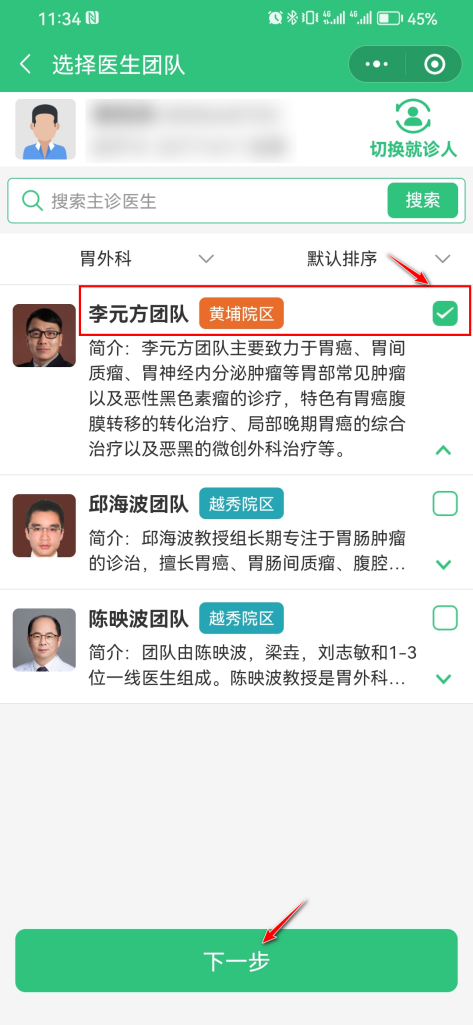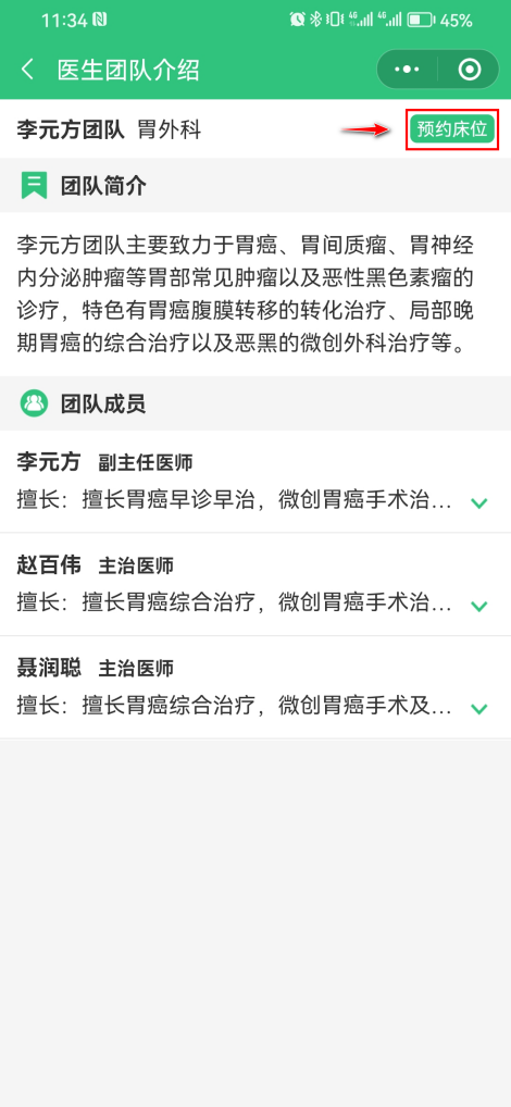 選擇需要預(yù)約的【??啤?/strong>及【醫(yī)療團(tuán)隊(duì)】