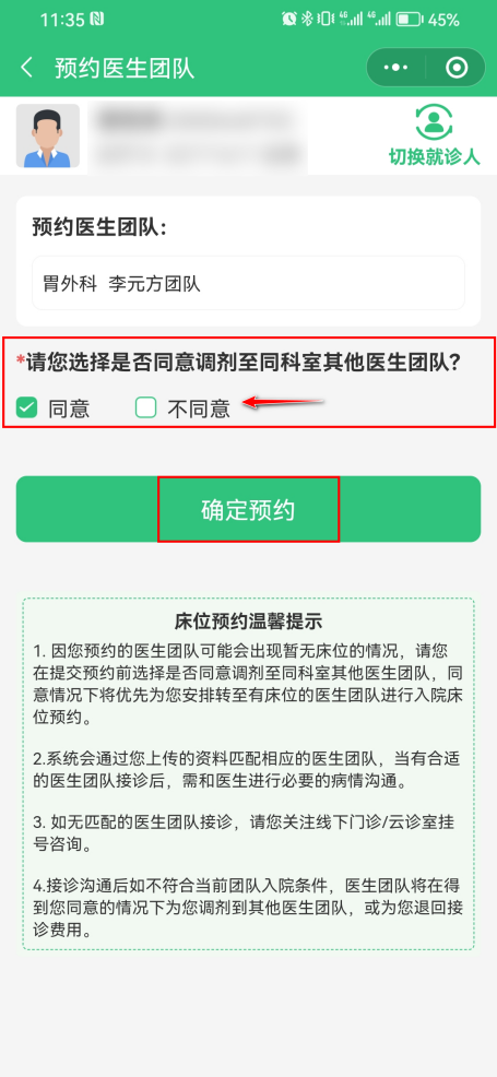 詳細(xì)閱讀并確認(rèn)【床位預(yù)約知情同意書】;確認(rèn)【預(yù)約信息】,病友可根據(jù)自身需求選擇是否同意【調(diào)劑】至同??破渌t(yī)療團(tuán)隊(duì)候床。