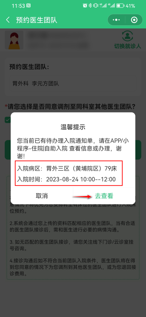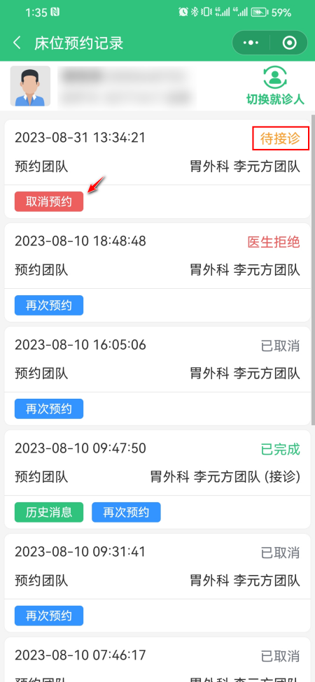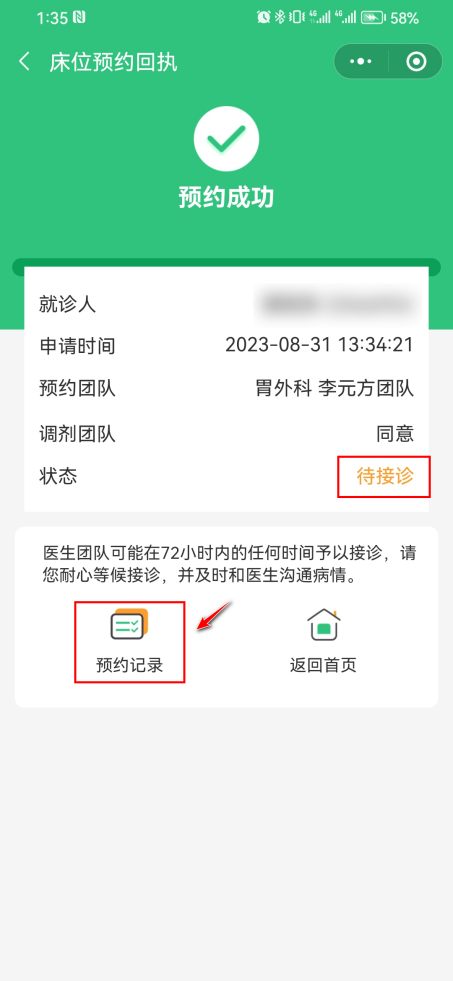 PS:如預(yù)約床位需求有變,可點(diǎn)選預(yù)約記錄查看,并及時(shí)操作取消預(yù)約。