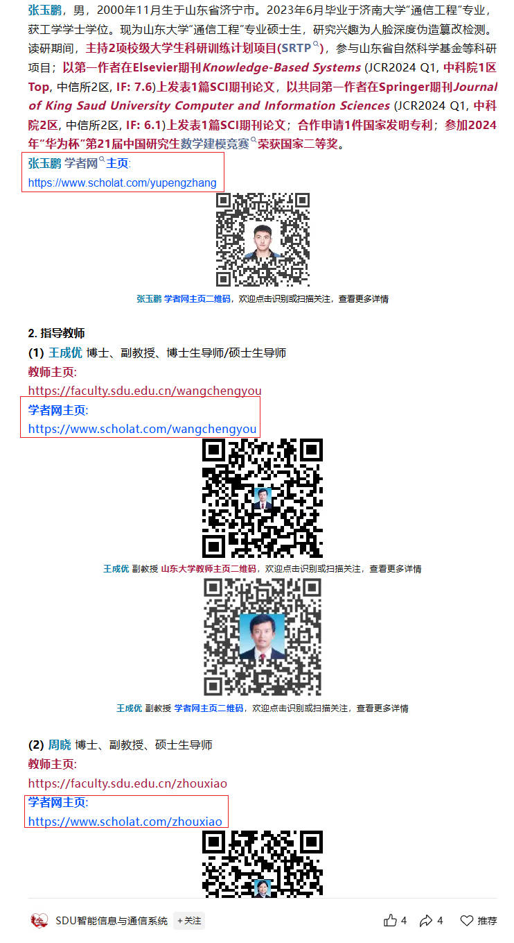 圖 5 使用學(xué)者網(wǎng)主頁鏈接的實(shí)例(來源:SDU智能信息與通訊系統(tǒng)公眾號(hào))