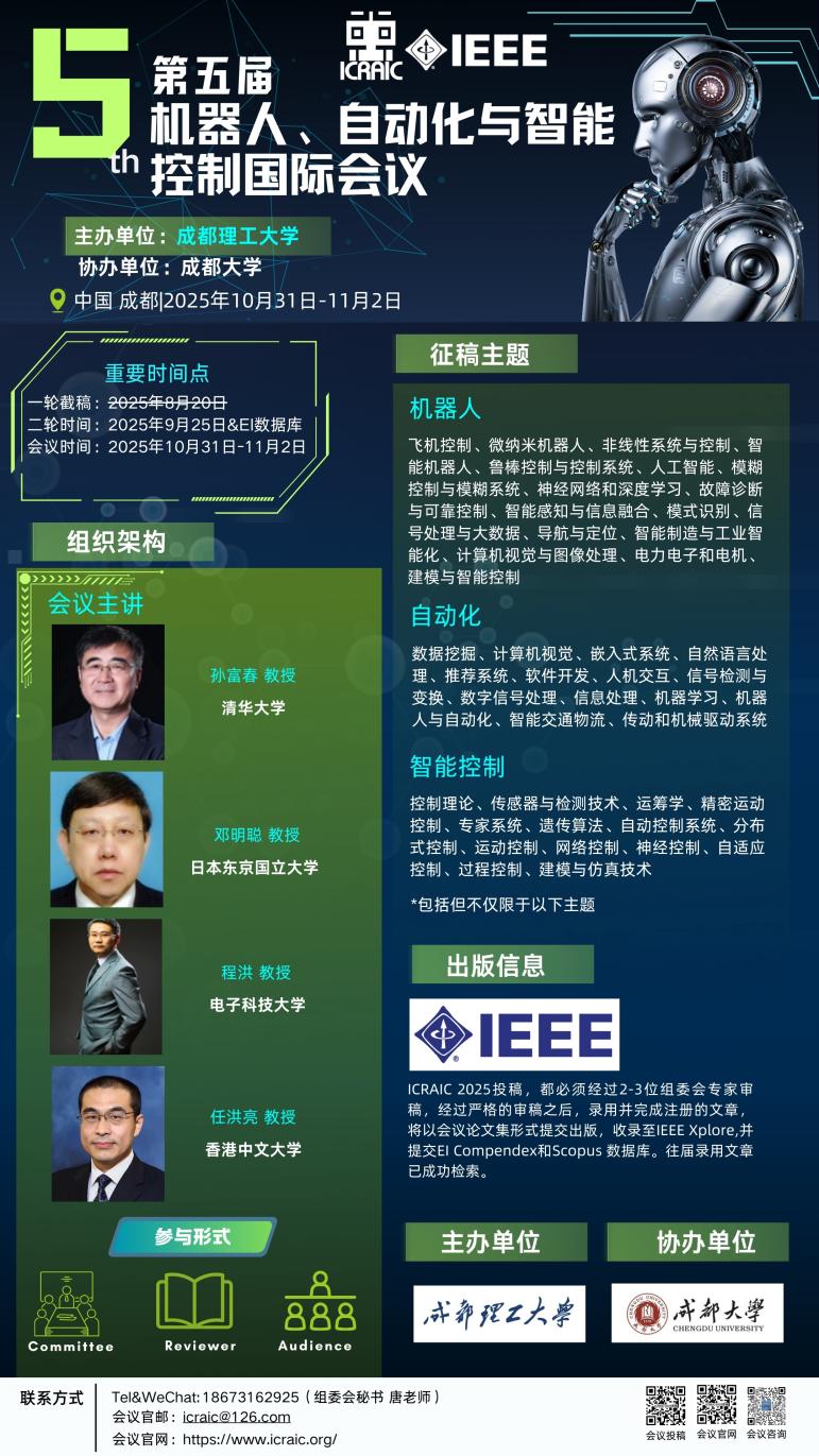 The 5th International Conference on Robotics, Automation and Intelligent Control(ICRAIC 2025)
