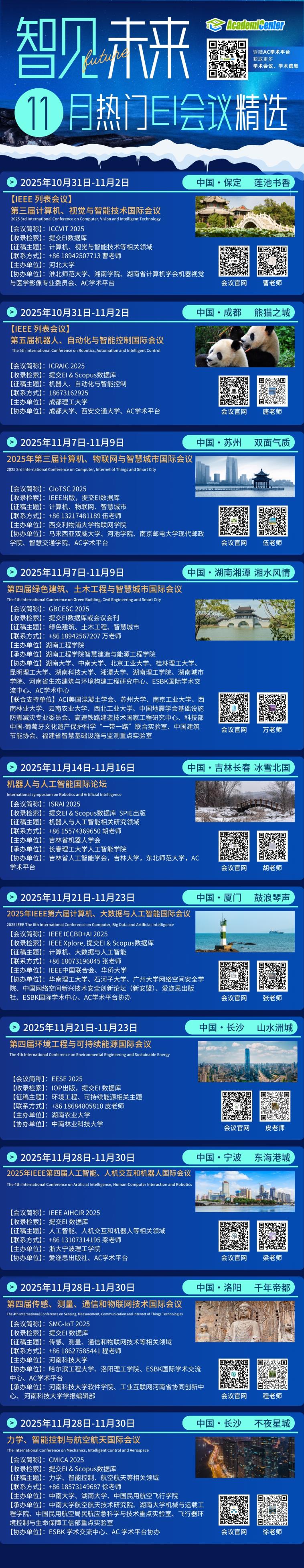 | 2025/11/7-9 | 蘇州 | 第三屆計算機、物聯(lián)網(wǎng)與智慧城市國際會議 |