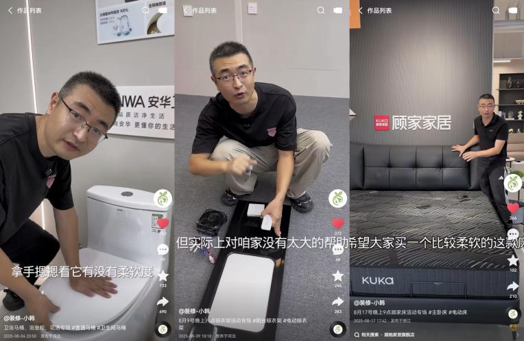 “新房裝修一定要先做吊頂后粘瓷磚,這樣做能夠降低瓷磚的磨損……”直播間里,小韓又開(kāi)始了他的裝修答疑。與大多數(shù)電商主播的風(fēng)格不同,小韓的短視頻和直播內(nèi)容很少會(huì)賣(mài)力宣傳產(chǎn)品賣(mài)點(diǎn),而是更多地講經(jīng)驗(yàn)、講方法、講技巧,甚至是講裝修和購(gòu)買(mǎi)的順序與尺寸,但他的“種草”效果卻出奇的好,有用戶(hù)可以在他直播間購(gòu)買(mǎi)全套家電家居裝備。