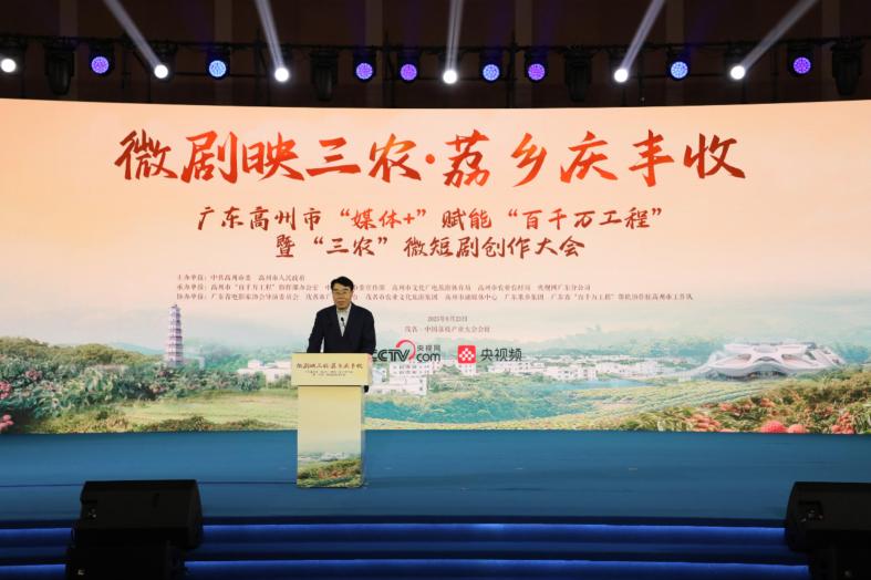 高州市委副書記、市長(zhǎng)盧巧智在致辭時(shí)表示,當(dāng)前,高州正以“媒體+”賦能“百千萬(wàn)工程”,探索數(shù)字內(nèi)容與農(nóng)業(yè)農(nóng)村現(xiàn)代化深度融合的新路徑,聯(lián)合省級(jí)媒體掛牌成立“粵港澳(茂名)三農(nóng)短劇拍攝創(chuàng)作合作區(qū)”,組建茂名·灘底微短劇經(jīng)濟(jì)服務(wù)中心,為劇組提供一站式服務(wù)。截至目前,已吸引108個(gè)劇組來(lái)高州取景,推出《荔鄉(xiāng)新夢(mèng)》《古荔新枝》等108部三農(nóng)題材微短劇,相關(guān)內(nèi)容播放量突破280萬(wàn)人次。微短劇不僅帶旺了荔枝、龍眼等特產(chǎn)銷售,更促進(jìn)了文旅融合,灘底村集體收入增長(zhǎng)40%,村民人均年收入增加近萬(wàn)元。未來(lái),高州將以微短劇為媒介,繼續(xù)講好三農(nóng)故事,傳播荔鄉(xiāng)文化,展示鄉(xiāng)村新貌。誠(chéng)摯邀請(qǐng)更多媒體機(jī)構(gòu)、創(chuàng)作團(tuán)隊(duì)走進(jìn)高州,用鏡頭記錄高州的山水田園,用創(chuàng)意展現(xiàn)高州的農(nóng)耕文明,共同助力高州農(nóng)業(yè)更強(qiáng)、農(nóng)村更美、農(nóng)民更富。