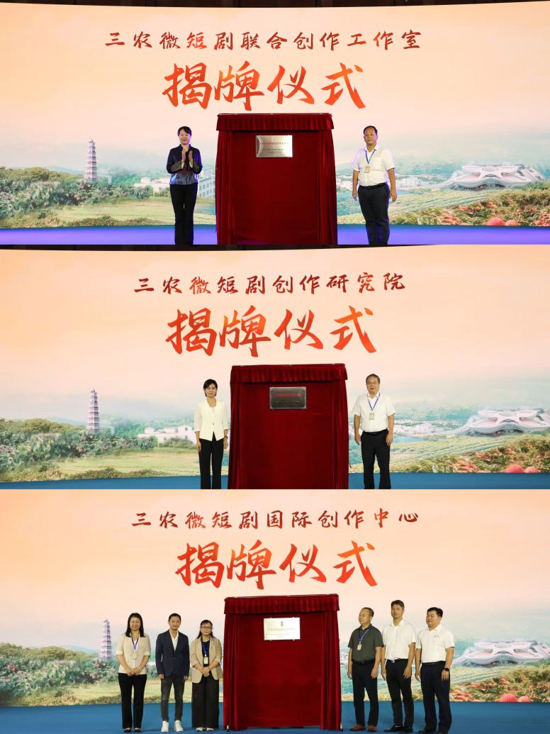 活動(dòng)現(xiàn)場(chǎng)揭牌成立了高州市人民政府與中國(guó)農(nóng)業(yè)電影電視中心共建的三農(nóng)微短劇聯(lián)合創(chuàng)作工作室、與華南農(nóng)業(yè)大學(xué)珠江學(xué)院共建的三農(nóng)微短劇創(chuàng)作研究院、與央視國(guó)際在線廣東頻道和廣東省電影家協(xié)會(huì)導(dǎo)演委員會(huì)共建的三農(nóng)微短劇國(guó)際創(chuàng)作中心。