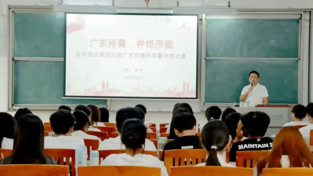 9月26日上午,學(xué)校黨委副書記、校長廖明以《廣東所需,仲愷所能——在中國式現(xiàn)代化的廣東實踐中貢獻仲愷力量》為題,在白云校區(qū)教學(xué)樓②503課室為輕工食品學(xué)院包裝251、營養(yǎng)251和質(zhì)安251的新生們帶來一堂別開生面的“思政第一課”。