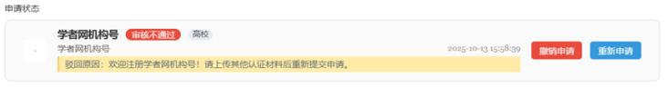 新版機(jī)構(gòu)號全面優(yōu)化了申請流程,采用 四步式可視化指引: 申請須知 → 填寫申請信息 → 管理員審核 → 認(rèn)證完成。申請人可以實(shí)時查看審核進(jìn)度,了解當(dāng)前所處階段。如果申請材料需要修改或補(bǔ)充,系統(tǒng)會提供詳細(xì)的提示與修改入口;在審核完成前,申請人也可隨時撤回申請,整個過程更加靈活可控。