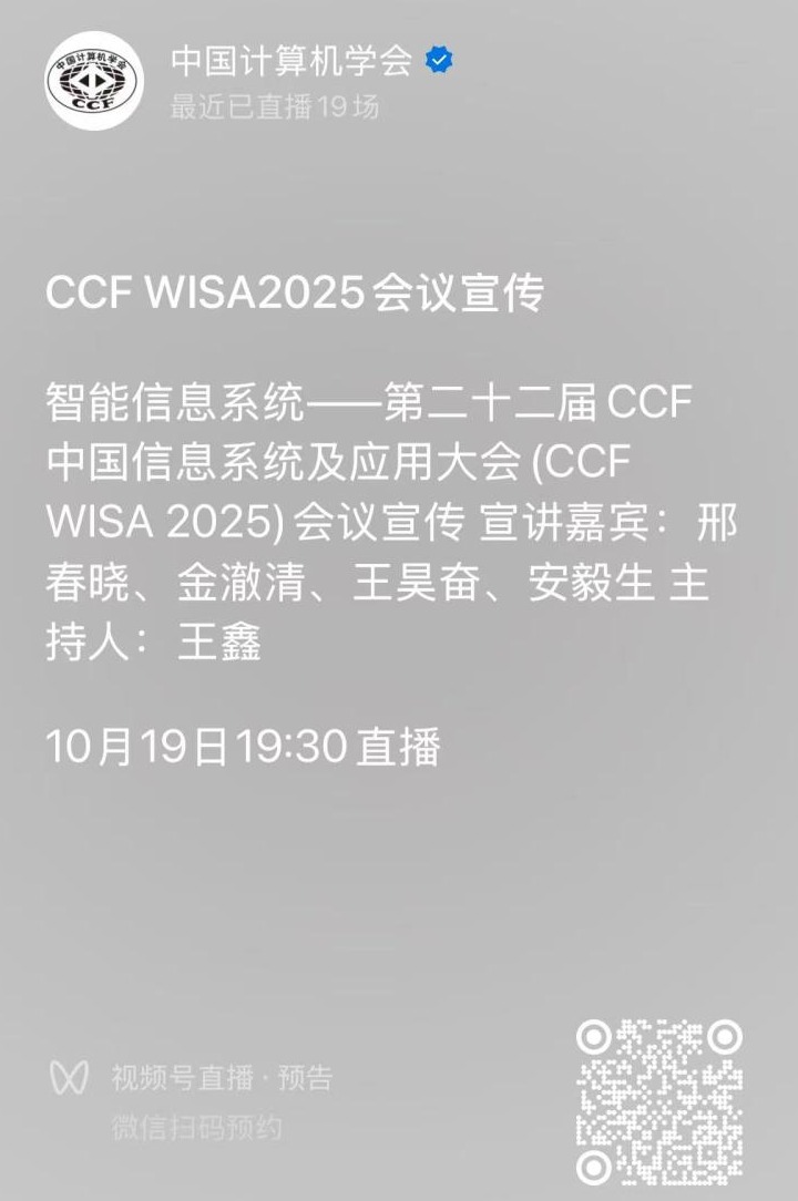 由中國計(jì)算機(jī)學(xué)會(CCF)主辦、CCF信息系統(tǒng)專業(yè)委員會、長安大學(xué)、西北大學(xué)共同承辦的旗艦會議——第二十二屆CCF中國信息系統(tǒng)及應(yīng)用大會(WISA 2025)(會議編號:CCF-TC-24-141)將于2025年10月31日-11月2日陜西省西安市召開。