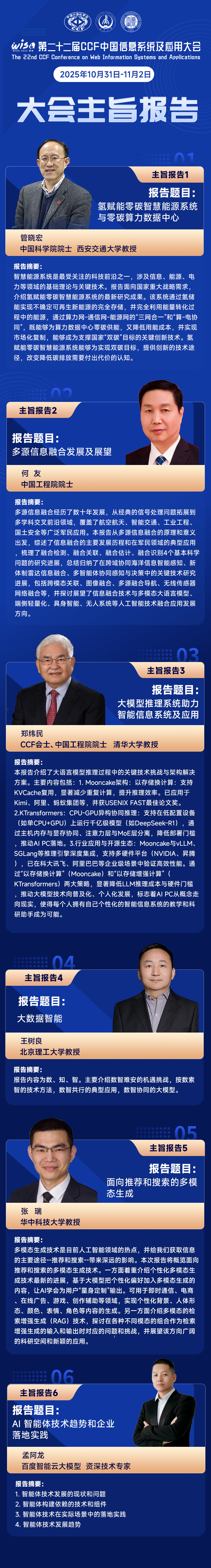 由中國計算機(jī)學(xué)會(CCF)主辦,CCF信息系統(tǒng)專業(yè)委員會、長安大學(xué)、西北大學(xué)承辦,北京百度網(wǎng)訊科技有限公司、陜西師范大學(xué)、西安建筑科技大學(xué)、西安理工大學(xué)、西安科技大學(xué)、陜西計算機(jī)學(xué)會協(xié)辦的旗艦會議——第二十二屆CCF中國信息系統(tǒng)及應(yīng)用大會(WISA 2025)將于2025年10月31日至11月2日在西安召開。