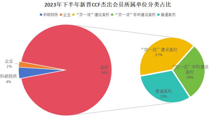 圖3 2023年下半年新晉CCF杰出會員中學者網(wǎng)用戶所屬單位分類占比