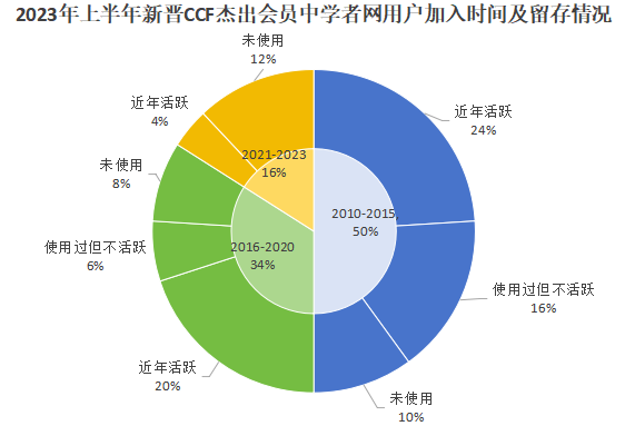 圖4 2023年下半年新晉CCF杰出會員中學者網(wǎng)用戶加入時間及留存情況