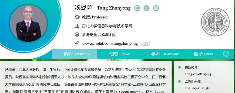 湯戰(zhàn)勇,西北大學信息科學與技術學院 (scholat.com)