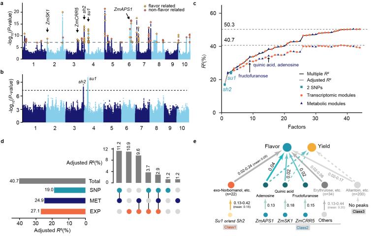 圖3.甜玉米風(fēng)味的多組學(xué)調(diào)控基礎(chǔ)及精準(zhǔn)預(yù)測(cè)。