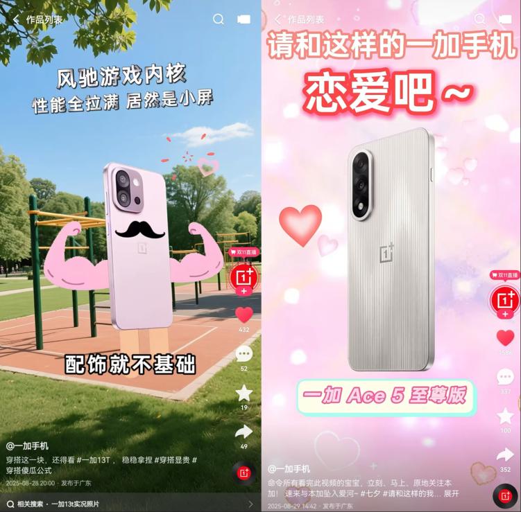 在內(nèi)容上,一加針對“性能Ultra旗艦”、“165Hz第三代東方屏”、“7300mAh超大電池”等新品核心賣點(diǎn),打造優(yōu)質(zhì)短視頻并進(jìn)行矩陣通發(fā),擴(kuò)大品牌新品勢能,吸引用戶關(guān)注。同時(shí),品牌還基于對平臺(tái)用戶消費(fèi)偏好的洞察,在產(chǎn)品展示、產(chǎn)品功能講解等新品內(nèi)容素材的基礎(chǔ)上,進(jìn)行差異化處理,強(qiáng)調(diào)大促期間新品的快手獨(dú)家玩法、補(bǔ)貼政策、優(yōu)惠額度,快速引爆新品內(nèi)容熱度,搶占用戶消費(fèi)心智。