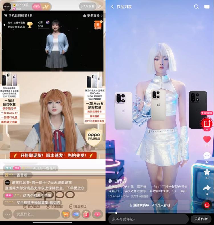 一加快手渠道負(fù)責(zé)人表示,當(dāng)前一加在平臺(tái)的目標(biāo)群體是20-30歲之間的男大學(xué)生和白領(lǐng)人群。因此在直播方面,一加結(jié)合用戶內(nèi)容偏好,打造創(chuàng)意直播間,通過貼合游戲主題的直播場景搭建、加入二次元形象助播等方式,有效提升直播間用戶停留。