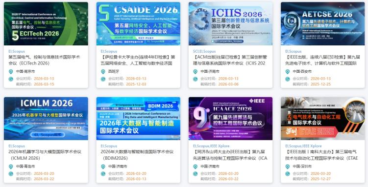 2026年3月高含金量學(xué)術(shù)會議日程速覽 , 覆蓋人工智能、計算智能、電子技術(shù)、應(yīng)用力學(xué)、光電信息、學(xué)習(xí)系統(tǒng)、航空航天工程、圖像處理、數(shù)據(jù)挖掘、能源工程、電氣控制、創(chuàng)新管理、控制系統(tǒng)、應(yīng)用統(tǒng)計、數(shù)字經(jīng)濟、應(yīng)用經(jīng)濟學(xué)、社會管理、大模型、機器學(xué)習(xí)、計算機技術(shù)、低空經(jīng)濟、可持續(xù)發(fā)展、多媒體技術(shù)、通信技術(shù)、數(shù)據(jù)安全、遙感測繪、材料工程、算法、機器視覺、天文學(xué)、光學(xué)測量、智能電網(wǎng)、虛擬現(xiàn)實、健康信息化、自動化工程、AI 教育技術(shù)與應(yīng)用、機械設(shè)計與仿真、生成式、環(huán)境監(jiān)測、生態(tài)修復(fù)、增強現(xiàn)實、機械工程、智慧交通、生物醫(yī)學(xué)、計算機工程等多主題,提供交流機會??鐚W(xué)科會議大盤點,國內(nèi)國外全覆蓋,大家可根據(jù)研究領(lǐng)域方向至官網(wǎng)查看具體信息,點擊獲取最新【學(xué)術(shù)會議資訊】