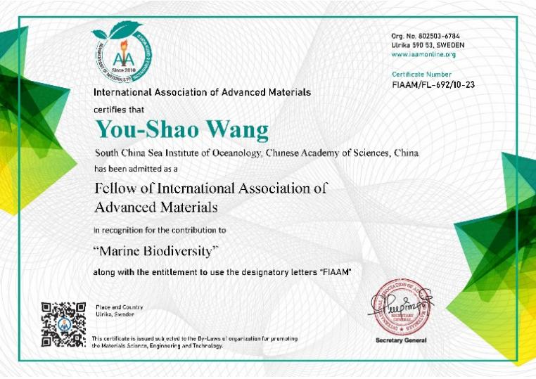 灣區(qū)時(shí)訊 10月11日,國際先進(jìn)材料協(xié)會(huì)(IAAM, International Association of Advanced Materials)公布2023年IAAM會(huì)士當(dāng)選名單,中國科學(xué)院南海海洋研究所研究員王友紹榮選。IAAM獎(jiǎng)項(xiàng)與表彰部主任P. Mishra博士致電王友紹,對其當(dāng)選2023年IAAM會(huì)士表示祝賀,并表彰他對紅樹林分子生態(tài)學(xué)與生態(tài)修復(fù)技術(shù)研究的卓越貢獻(xiàn)。