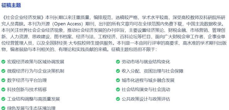 期刊名稱:社會企業(yè)經(jīng)濟發(fā)展