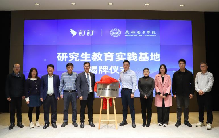 在雙方有關(guān)人員的見證下,歐洲科學(xué)與藝術(shù)學(xué)院院士、廣州南方學(xué)院副校長(zhǎng)楊雙華教授,釘釘(中國(guó))信息技術(shù)有限公司科教行業(yè)總經(jīng)理馮登偉先生代表雙方簽約并為基地揭牌,標(biāo)志著雙方合作進(jìn)入實(shí)質(zhì)落地階段。