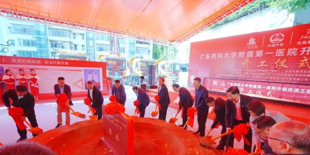 廣州市政協(xié)原主席劉悅倫,廣東省教育廳一級巡視員朱超華,廣東省代建項(xiàng)目管理局副局長張為健,廣州市越秀區(qū)人民政府副區(qū)長肖逢春,廣州市衛(wèi)生健康委員會(huì)副主任張屹、醫(yī)政處處長李鐵鋼,廣東省發(fā)展與改革委員會(huì)社會(huì)處處長陳力,廣東省衛(wèi)生健康委員會(huì)處長張發(fā)濱,廣州市住房和城鄉(xiāng)建設(shè)局處長劉崇權(quán),廣州市規(guī)劃和自然資源局處長黃虹,廣州市規(guī)劃局越秀分局局長梁志偉,廣州市越秀區(qū)人民政府農(nóng)林街道辦事處書記閆景,廣州市越秀區(qū)建設(shè)和水務(wù)局黨組副書記葉煥堅(jiān),項(xiàng)目主要參建單位中鐵二局集團(tuán)有限公司副總經(jīng)理晏大武,廣州機(jī)施建設(shè)集團(tuán)有限公司總經(jīng)理張占峰,廣東藥科大學(xué)黨委書記劉晟,校長翟理祥,黨委副書記、紀(jì)委書記凌子平,副校長甘遠(yuǎn)洪、副校長肖煒,以及附一院全體院領(lǐng)導(dǎo)班子成員等出席了開工儀式。