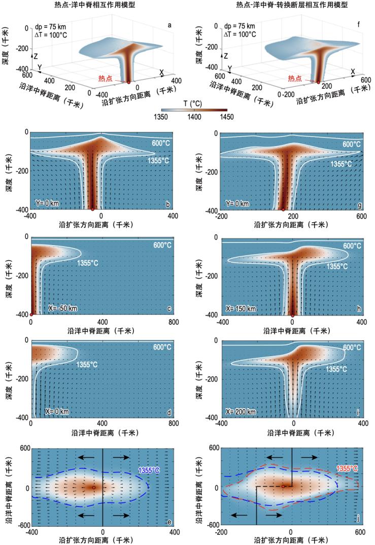 研究發(fā)現(xiàn),當(dāng)熱點(diǎn)位于轉(zhuǎn)換斷層下方時(shí),轉(zhuǎn)換斷層的存在促進(jìn)了熱點(diǎn)-洋中脊相互作用的范圍。該項(xiàng)研究對(duì)于理解熱點(diǎn)-洋中脊-轉(zhuǎn)換斷層在不同空間位置下的相互作用模式具有重要意義。