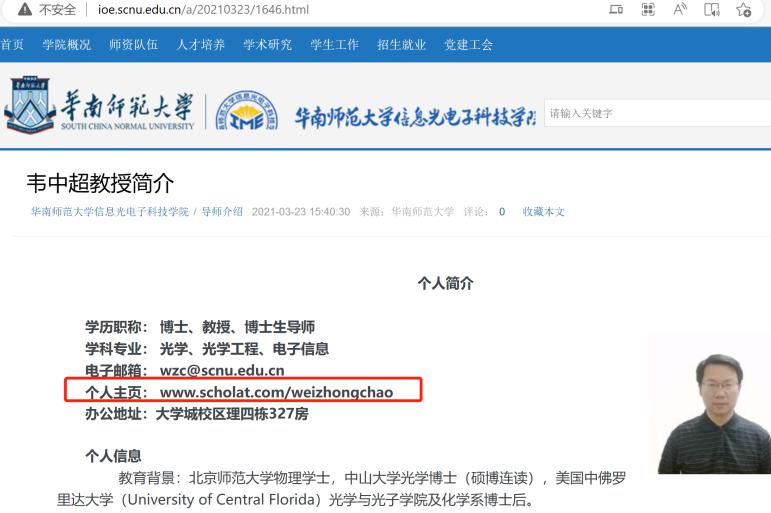 韋中超教授簡介 - 導(dǎo)師介紹 - 華南師范大學(xué)信息光電子科技學(xué)院 (scnu.edu.cn)