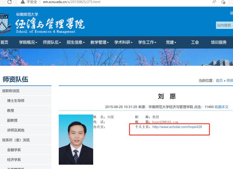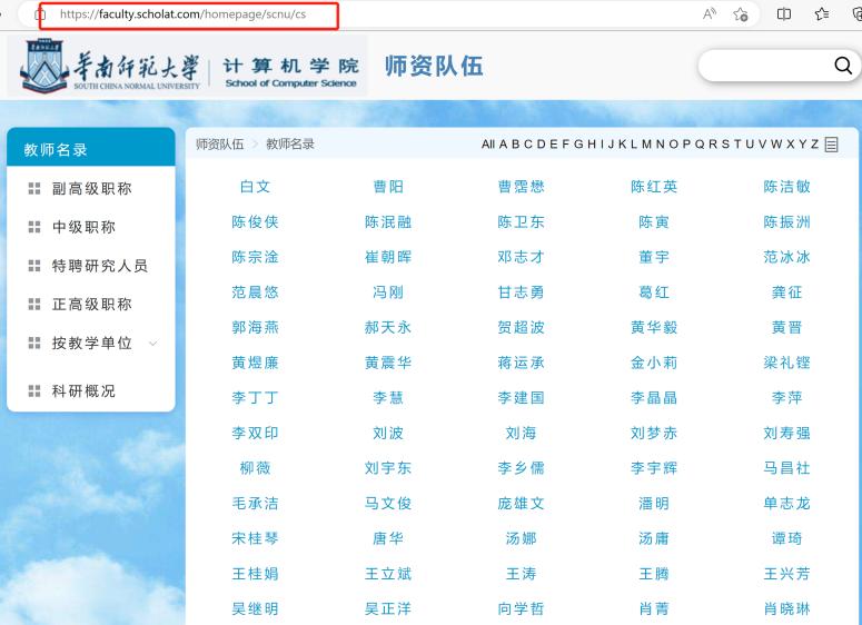 兩種方式:1)官網(wǎng)師資隊伍教師中使用學(xué)者網(wǎng)專用系統(tǒng)(API);2)導(dǎo)師隊伍欄目直接鏈接。