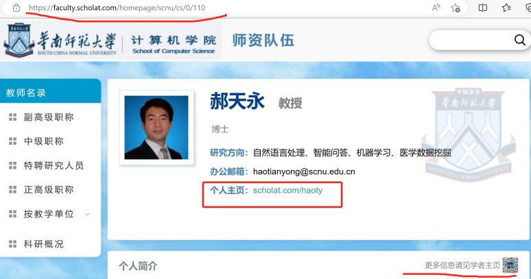 兩種方式:1)官網(wǎng)師資隊伍教師中直接鏈接學(xué)者網(wǎng)主頁(約92%老師);2)官方個人主頁中標(biāo)注學(xué)者網(wǎng)個人主頁和團(tuán)隊,并設(shè)置鏈接。