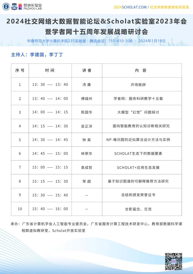在這次2024社交網(wǎng)絡(luò)大數(shù)據(jù)智能論壇&Scholat實(shí)驗(yàn)室2023年會(huì)暨學(xué)者網(wǎng)十五周年發(fā)展戰(zhàn)略研討會(huì)上,匯聚了一群積極向上的學(xué)者,老師和學(xué)生,共同回顧了學(xué)者網(wǎng)歷經(jīng)風(fēng)雨的十五年并探討了學(xué)術(shù)社交網(wǎng)絡(luò)的未來(lái)發(fā)展戰(zhàn)略,分享了寶貴的學(xué)術(shù)經(jīng)驗(yàn)。這次會(huì)議不僅拉近了各代成員之間的距離,也促進(jìn)了大家對(duì)學(xué)術(shù)的更深刻理解。感謝所有出席的老師和博士,他們的分享使大家受益匪淺,不僅拓寬了大家的學(xué)術(shù)視野,還激勵(lì)著大家在學(xué)術(shù)道路上不斷前行。各位老師和博士的分享都讓大家深刻明白學(xué)術(shù)世界的廣度和深度。