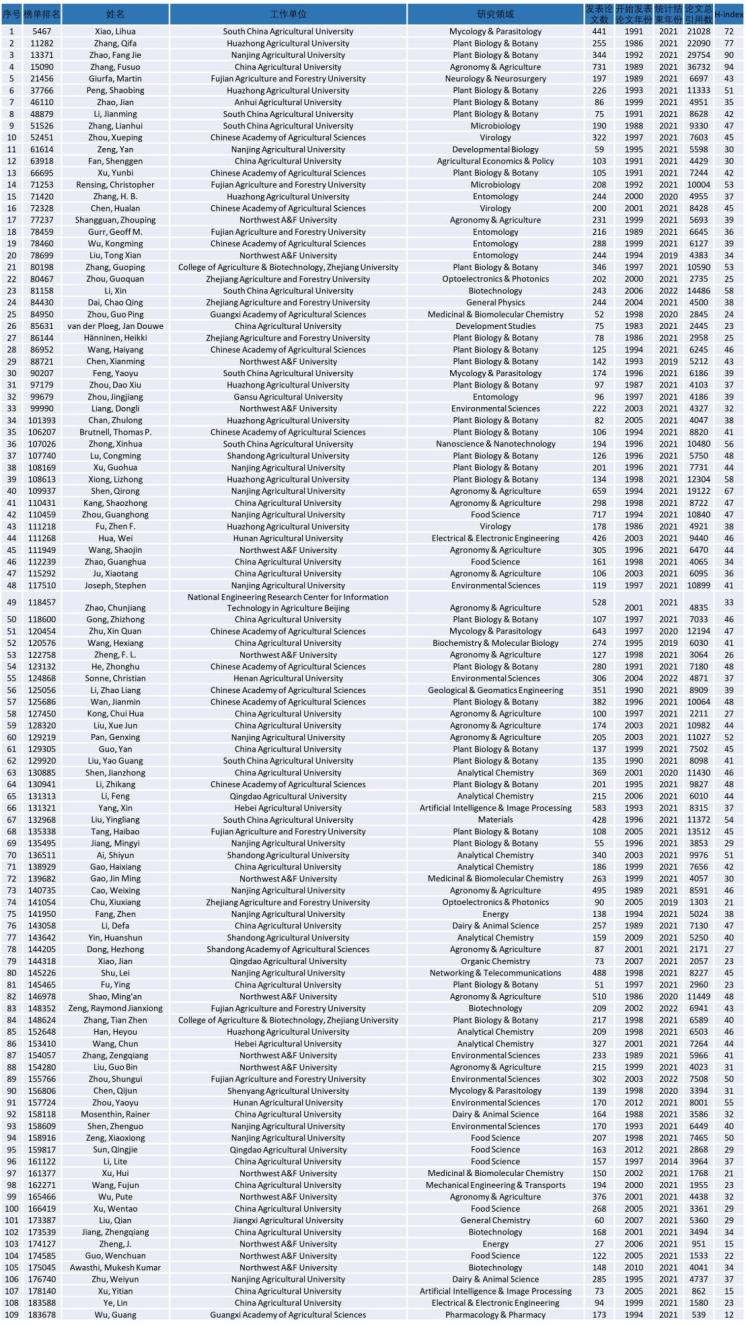 本報(bào)道涉及的科學(xué)家名單僅限于內(nèi)地單位名稱中含有“Agricultural”關(guān)鍵字的20家科研機(jī)構(gòu),內(nèi)地其他從事農(nóng)業(yè)科研工作的科學(xué)家可能沒有添加到榜單中,有需要加入的專家學(xué)者、機(jī)構(gòu)請(qǐng)及時(shí)聯(lián)系,報(bào)道的內(nèi)容將及時(shí)更新。