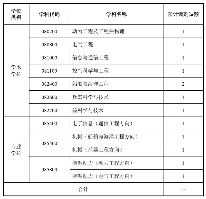 注:各學(xué)科實(shí)際調(diào)劑缺額,視第一志愿錄取情況而定。