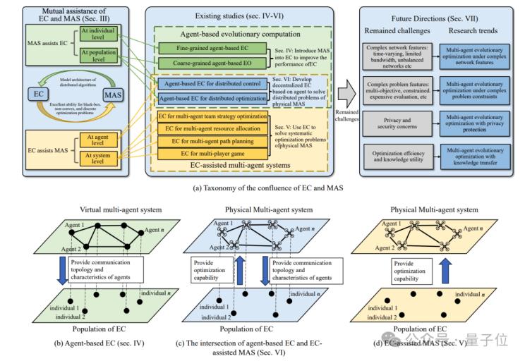 為梳理進(jìn)化計算與多智能體系統(tǒng)交叉領(lǐng)域的發(fā)展脈絡(luò),團(tuán)隊在IEEE/CAA Journal of Automatica Sinica發(fā)表綜述論文,系統(tǒng)總結(jié)了二者融合的主要研究方向與技術(shù)路徑。
