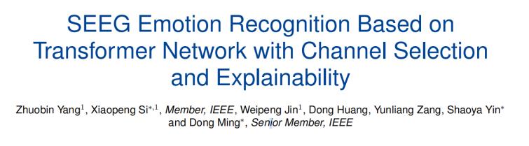 該論文發(fā)表于IEEE Journal of Biomedical and Health Informatics(中科院二區(qū),IF=6.8),題目為《SEEG Emotion Recognition Based on Transformer Network With Channel Selection and Explainability》。