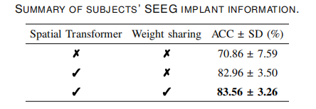 本研究通過消融實(shí)驗(yàn)評(píng)估了STHN各組件對(duì)情緒識(shí)別的影響(表2)。完整模型效果最佳;移除Transformer權(quán)重共享機(jī)制性能下降0.6%,而移除空間Transformer則顯著下降12.1%。結(jié)果表明,空間Transformer在捕捉SEEG通道間判別性情緒信息方面具有重要作用。