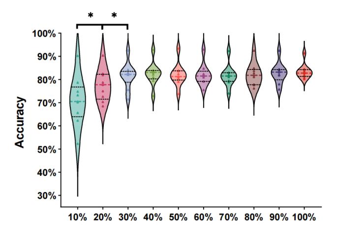 圖5 按權(quán)重,選取不同百分比SEEG通道時(shí)模型的準(zhǔn)確率