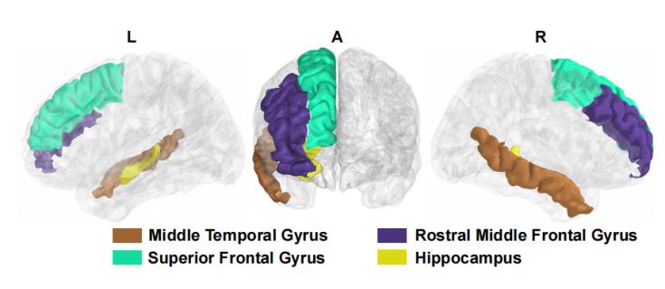 圖7 篩選出的腦區(qū)在大腦中對(duì)應(yīng)位置