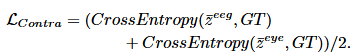 ,其中S表示樣本數(shù)量,Df表示最終嵌入維度。因此可以得到S個正樣本對,S^2-S個負(fù)樣本對。根據(jù)InfoNCE思想,可以將其視為一個S類別的分類任務(wù)。以EEG和EYE為例,可以定義真實標(biāo)簽GT為 [0, 1, …, S-1],然后計算對比損失Lcontra: