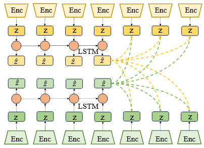 其中,T表示時間窗口長度,S表示數(shù)據(jù)樣本數(shù)量,D表示嵌入維度。作者使用一個雙層LSTM作為每個模態(tài)的自回歸模型。定義M為觀測序列長度,N為預(yù)測步長,可以得到:
