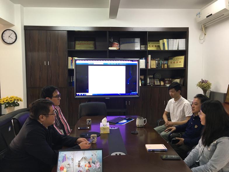 圖1 楊關(guān)博士、陳廣智博士與湯庸教授和團隊課程小組成員交流