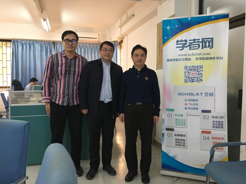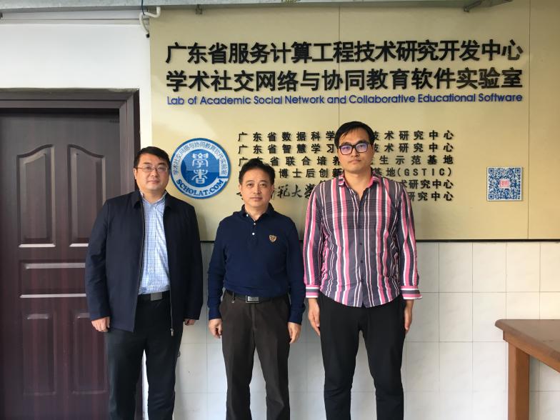 2018年11月26日,中原工學院計算機學院副院長楊關(guān)博士和鄭州航空工業(yè)管理學院陳廣智博士訪問SCHOLAT實驗室。交流期間陳廣智老師與課程小組交流了在使用課程平臺中遇到的具體問題,楊關(guān)博士現(xiàn)場注冊了學者網(wǎng)并進行了初步體驗。交流會后,楊關(guān)博士和陳廣智博士參觀了SCHOLAT實驗室、服務(wù)器及研究成果展示區(qū)。