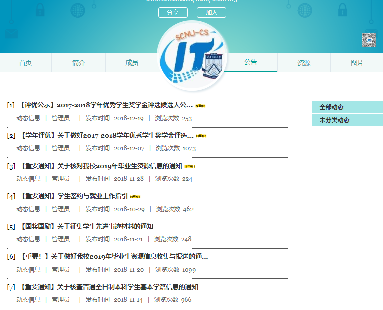 “計算機學院本科生2015級大家庭”共有274名學生,其中有20名管理員(協(xié)助輔導員進行班集體建設(shè));班級團隊主頁的訪問量達81萬+;團隊公告有350+,熱門動態(tài)的訪問量有1000+;資源記錄有100+。