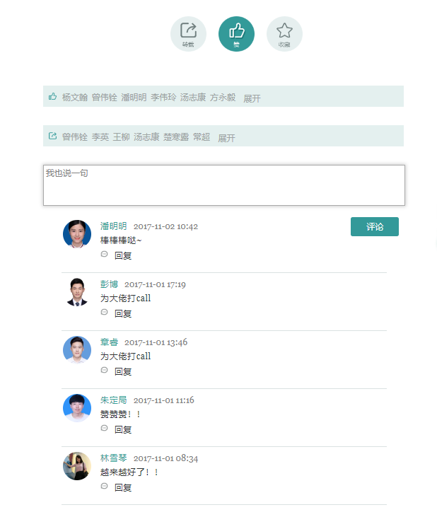 (3)擁有良好的師生溝通氛圍。通過學生對團隊公告的評價,輔導員老師能夠知道同學們對某活動或某事件的真實看法,從而適當?shù)恼{(diào)整今后的學生工作。
