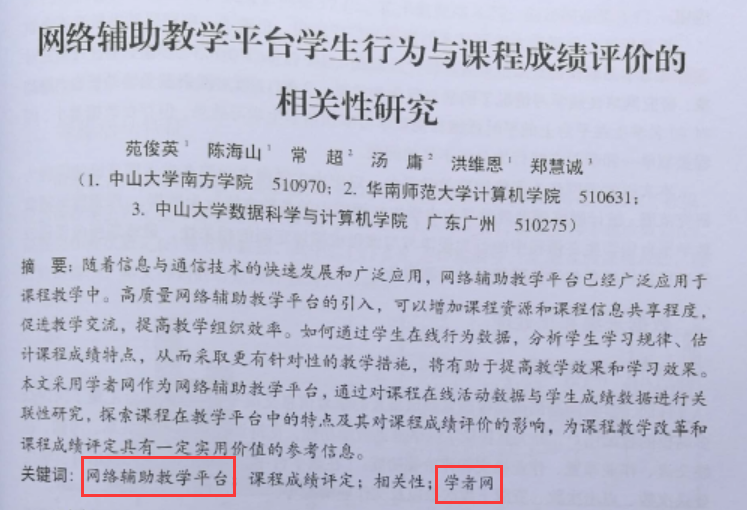 此次論壇的論文集中有兩篇論文《<高級(jí)語言程序設(shè)計(jì)>課程成績分析》、《網(wǎng)絡(luò)輔助教學(xué)平臺(tái)學(xué)生行為與課程成績?cè)u(píng)價(jià)的相關(guān)性研究》,使用”學(xué)者網(wǎng)+課程平臺(tái)”作為教學(xué)輔助工具,進(jìn)行課程教學(xué)資源共享、考勤、在線交流、作業(yè)布置、作業(yè)提交、評(píng)價(jià)等,同時(shí)為教學(xué)研究提供數(shù)據(jù)采集平臺(tái),如學(xué)生登陸次數(shù)、點(diǎn)擊次數(shù)、資源下載次數(shù)以及交作業(yè)情況。