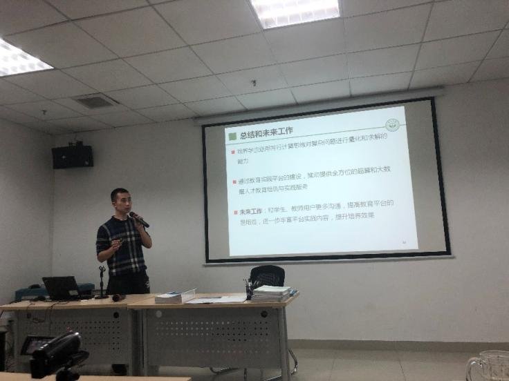 在培訓活動中,受活動主辦方邀請,超算習堂開發(fā)團隊核心成員劉學正代表整個項目團隊對超算習堂的背景和應用做了詳細的介紹。報告首先從目前國內(nèi)外HPC教育的現(xiàn)狀出發(fā),指出了其實踐環(huán)節(jié)單薄、教育模式欠靈活等痛點問題,并詳細介紹了超算習堂平臺的課程教育、在線編程、在線實訓、案例展示等諸多內(nèi)容,從入門用戶的角度講述如何利用平臺在短期內(nèi)輕松入門高性能計算并掌握基礎的并行編程知識,最后對未來工作進行了展望,并現(xiàn)場向廣大學員展示了超算習堂的主要功能。